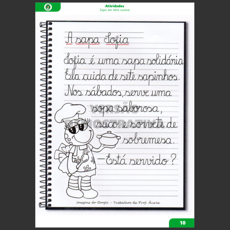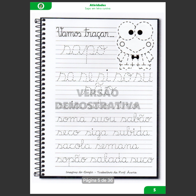 Cada grupo apresenta atividades de português como ditados, pesquisa, caligrafia, plaquinhas e muito mais.