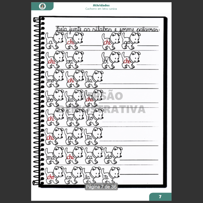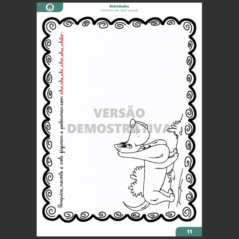 Atividade Cachorro - Letra CH Cursiva