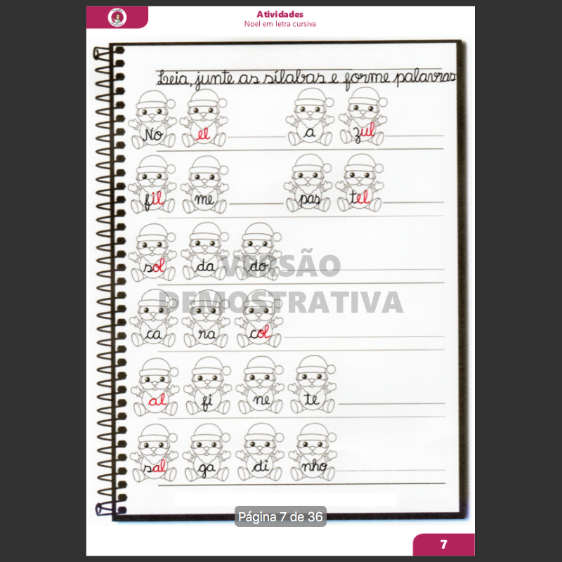 Atividade Noél - Letra AL EL IL OL UL Cursiva