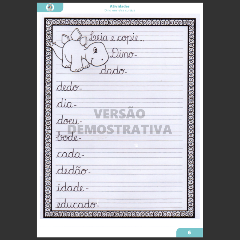 Atividade Dino - Letra D Cursiva