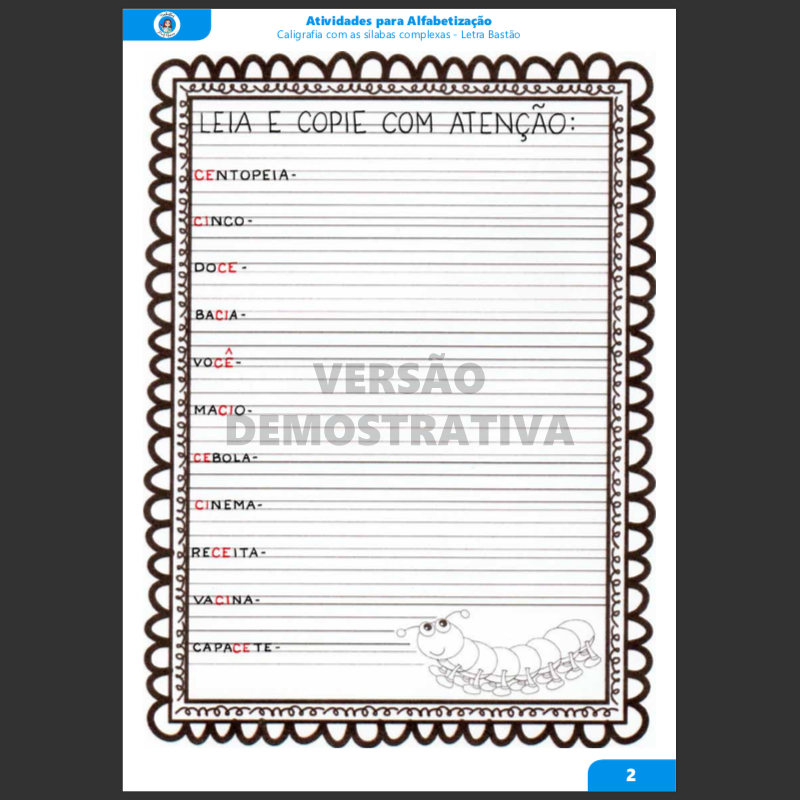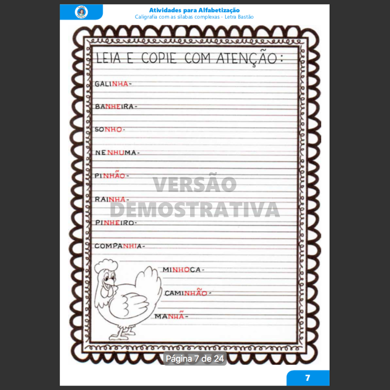 Caderno Caligrafia com as Sílabas Complexas Bastão