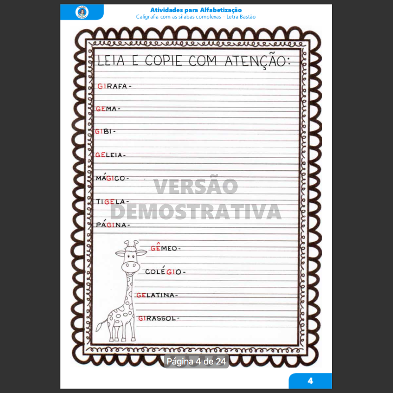 As atividades para alfabetização foram preparadas para serem aplicadas a partir do primeiro ano (6 anos) e para o segundo ano (7 e 8 anos) do Ensino Fundamental. Possuindo 20 páginas prontas para imprimir.