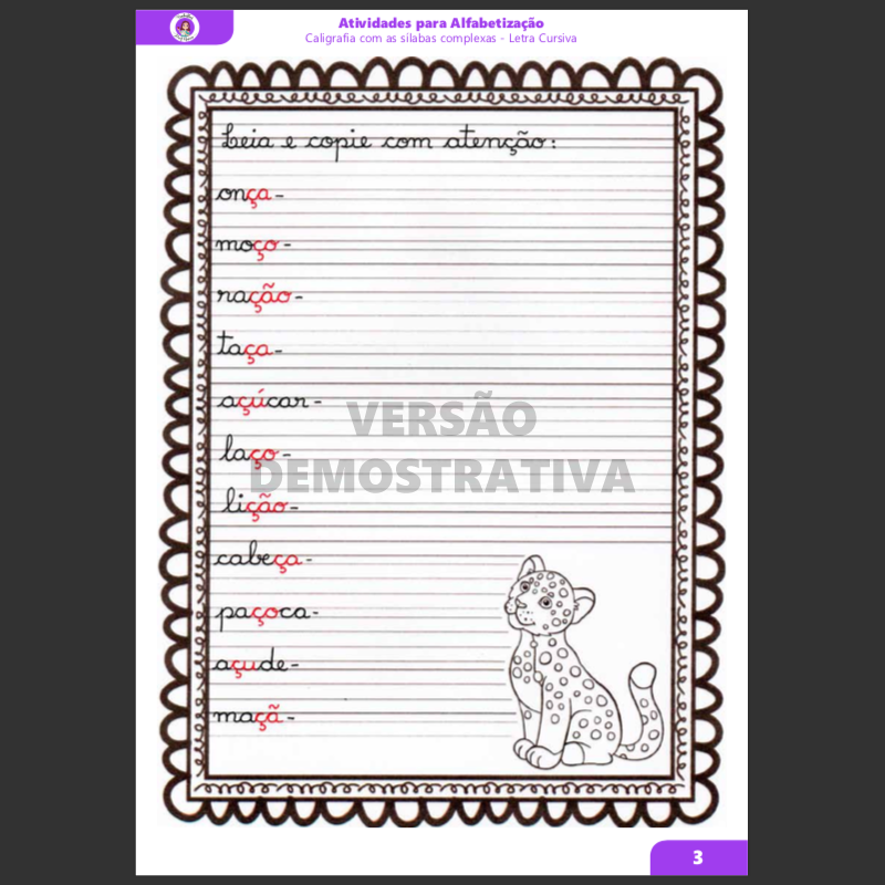 Caderno Caligrafia com as Sílabas Complexas Cursiva