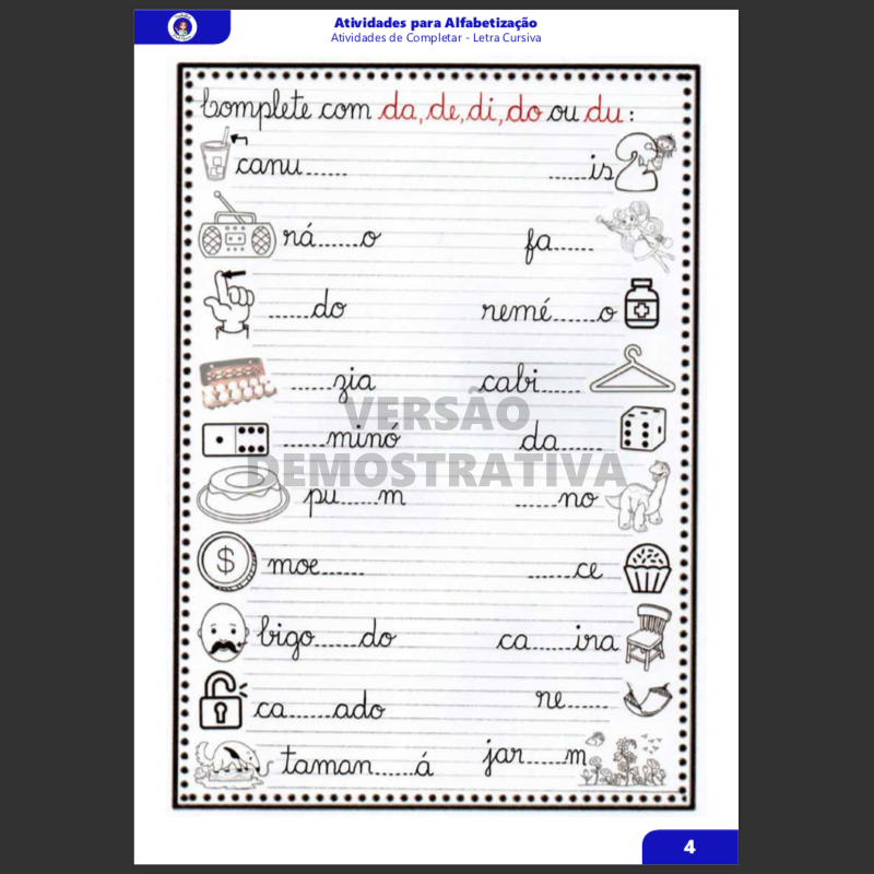 As atividades para alfabetização foram preparadas para serem aplicadas a partir do primeiro ano (6 anos) e para o segundo ano (7 e 8 anos) do Ensino Fundamental. Possuindo 18 páginas prontas para imprimir.
