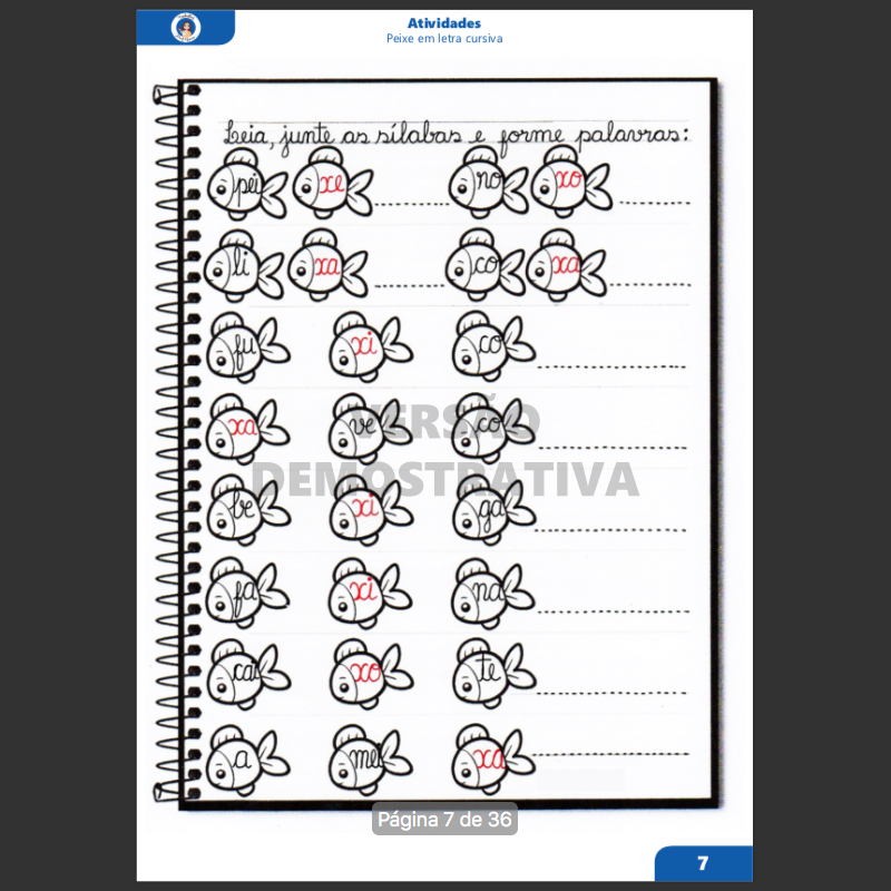 Atividade Peixe - Letra X Cursiva