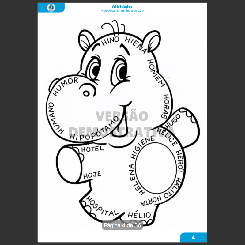 Atividade HIPOPÓTAMO - Letra H Bastão