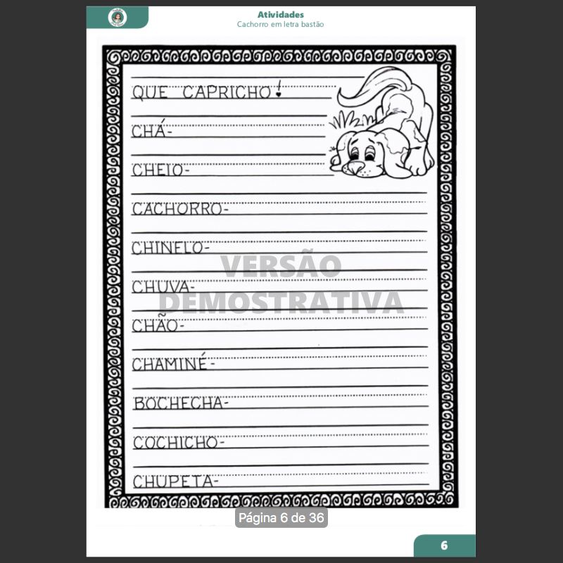 Atividade CACHORRO - Letra CH Bastão