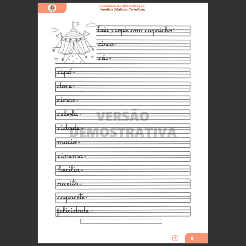 Além do trabalho completo com todas as famílias silábicas simples, apresenta atividades de português como ditados, pesquisa, caligrafia, plaquinhas e muito mais.