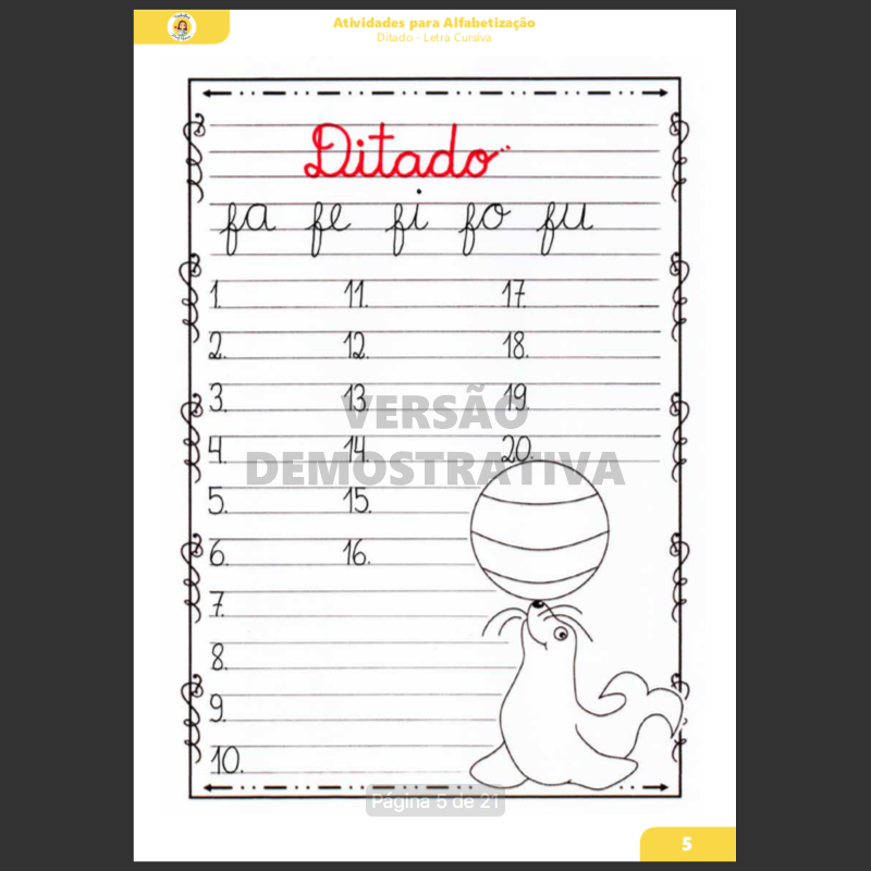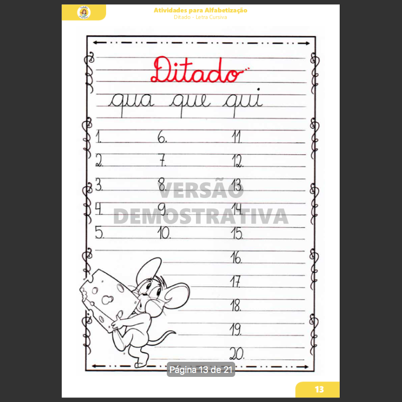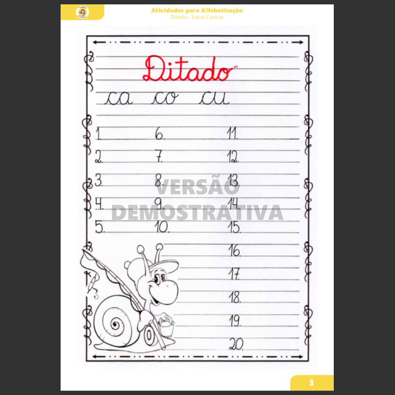 As atividades para alfabetização foram preparadas para serem aplicadas a partir do primeiro ano (6 anos) e para o segundo ano (7 e 8 anos) do Ensino Fundamental. Possuindo 18 páginas prontas para imprimir.