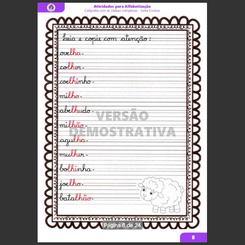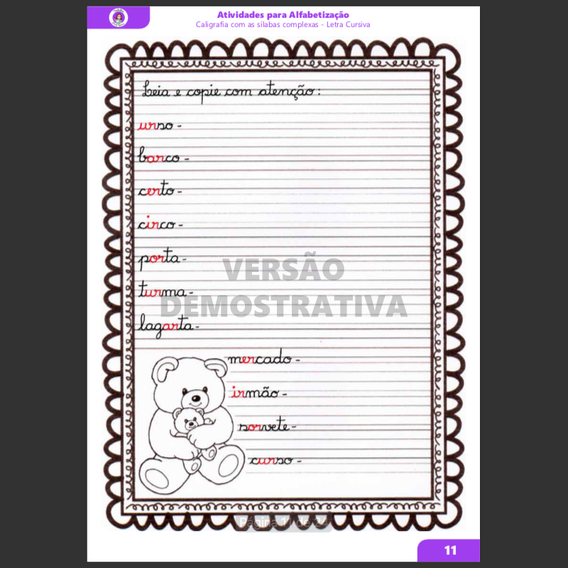 Caderno Caligrafia com as Sílabas Complexas Cursiva
